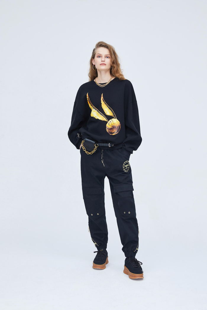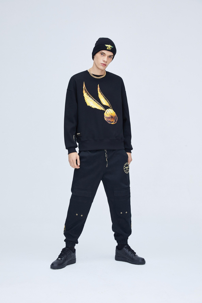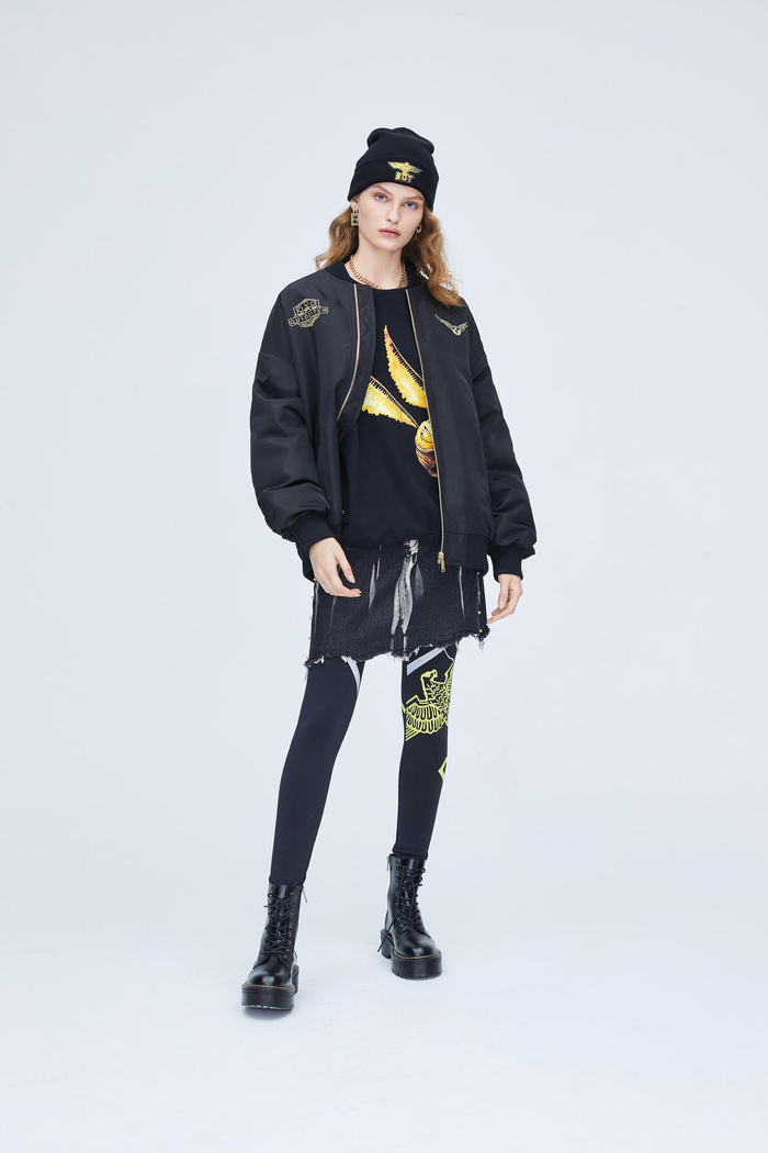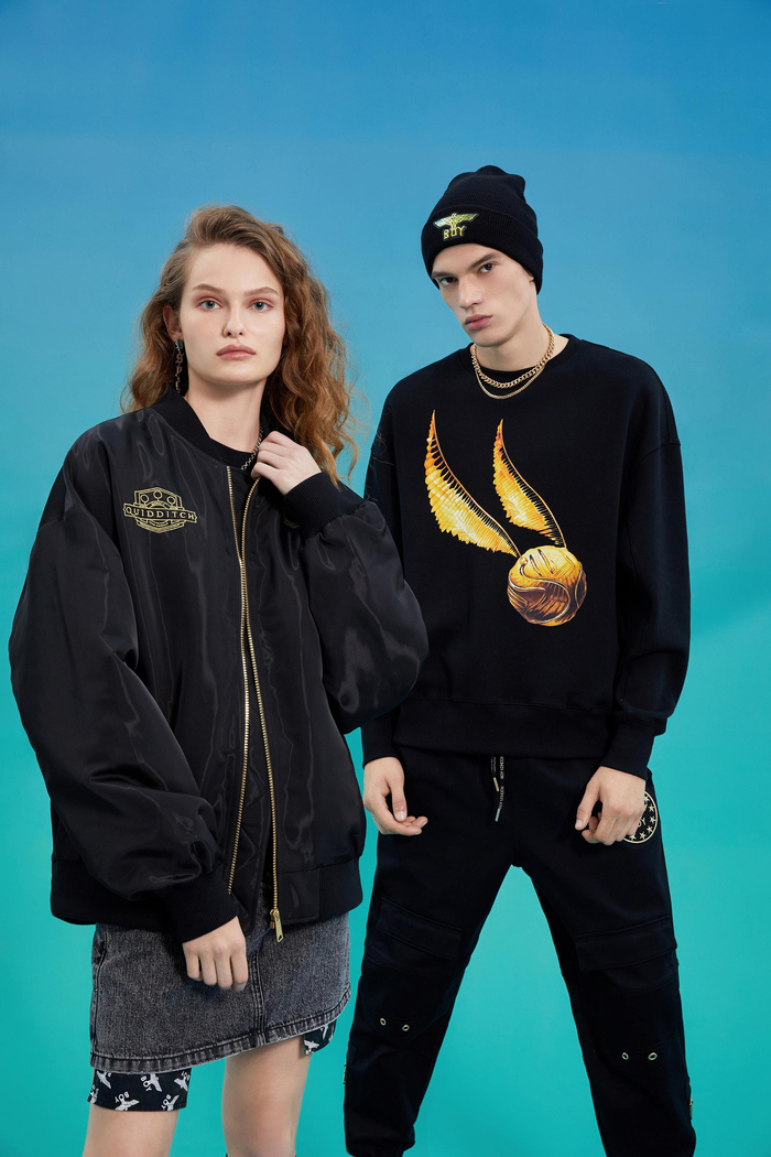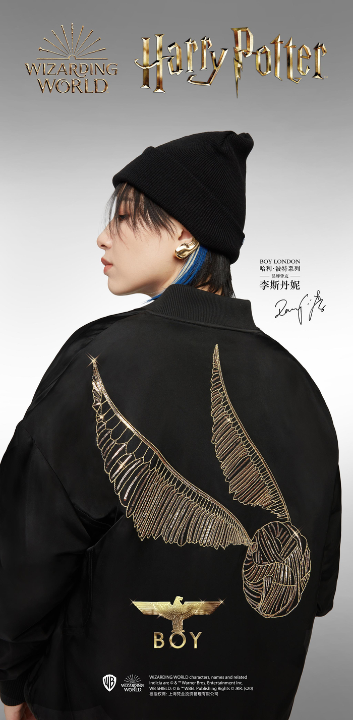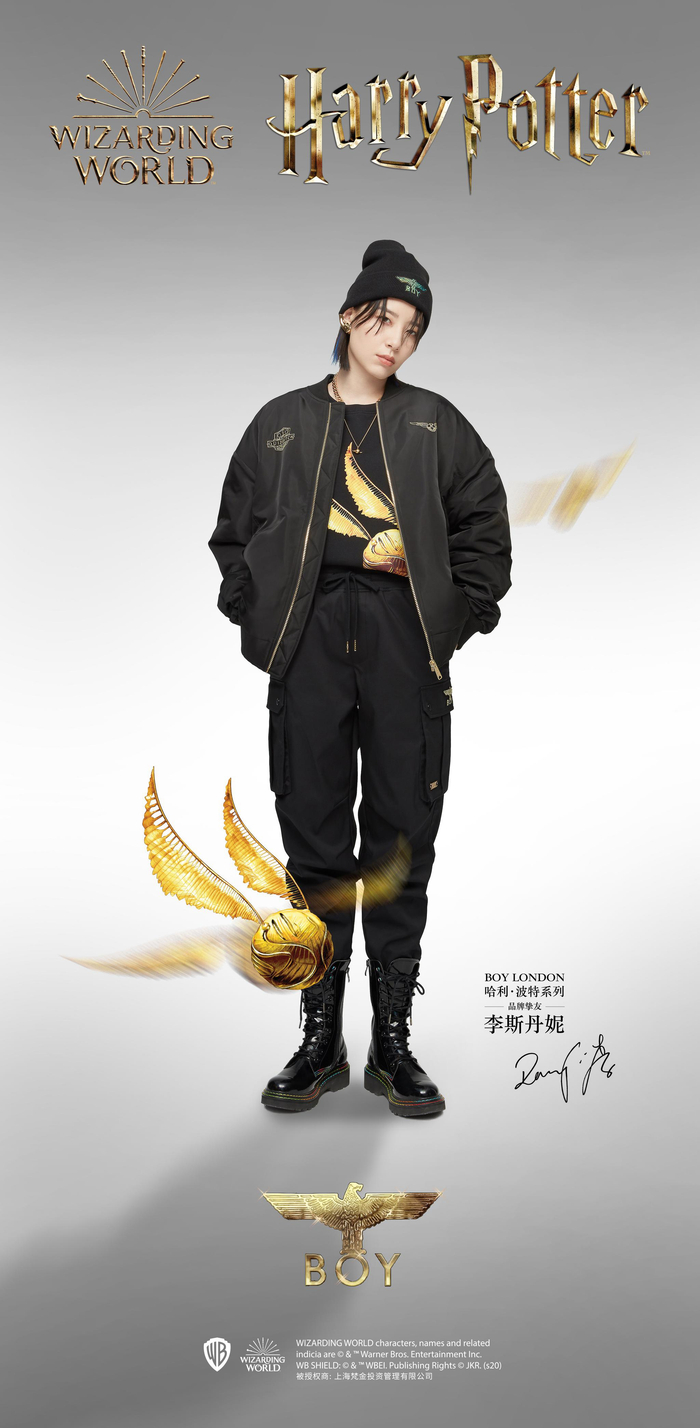 BOY LONDON与哈利·波特的烫金LOGO,交映凸显两者注定契合的相遇。象征着荣耀的金色飞贼振动翅翼,以流畅张扬的“鹰”型线条悬停。BOY LONDON的经典黑金配色,获得独一无二的魔力诠释。身为拥有超强实力的找球手,这场比赛你的目标是:完美胜利。神奇动物夜骐则由两种不同底彩的渐变印花,发掘不羁又迷人的灵魂,呈选为全新的精神ICON。