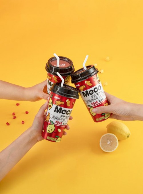 据悉,Meco蜜谷酸辣凤爪味果汁茶是以生姜的辣味,加上康普茶和柠檬的酸度,再配合凤爪鲜香的口感全新调制而成——可以喝的酸辣凤爪,不用吐骨头,热量还超低,好喝无负担,想想就刺激。必须给Meco蜜谷这波操作疯狂打call!
