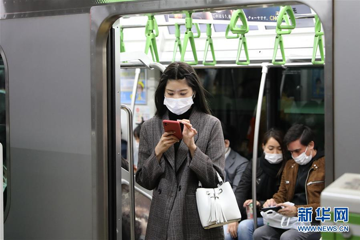 10月30日,在日本东京,人们戴口罩乘车。 据日本广播协会电视台统计,日本30日新增新冠确诊病例776例,累计确诊100577例;新增死亡8例,累计死亡1756例(以上数据均不含“钻石公主”号邮轮病例)。 新华社记者 杜潇逸 摄