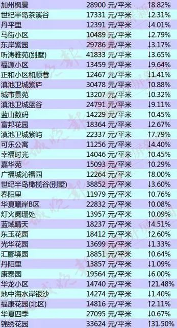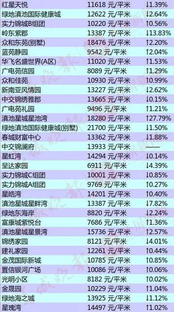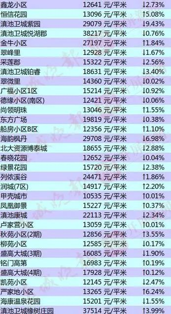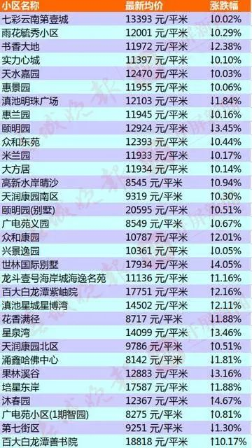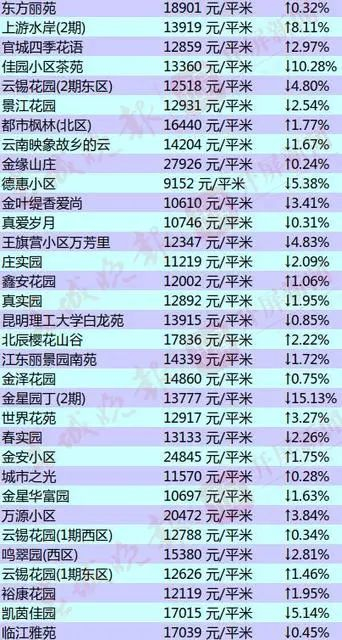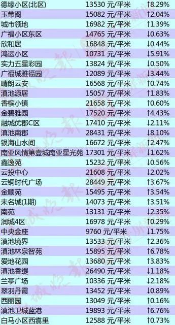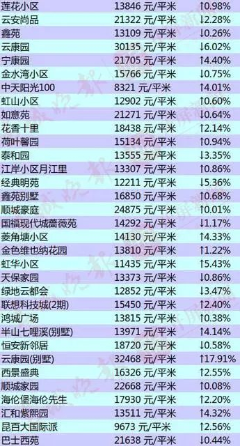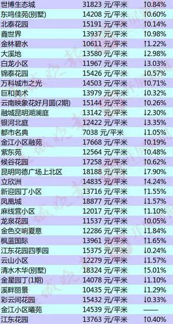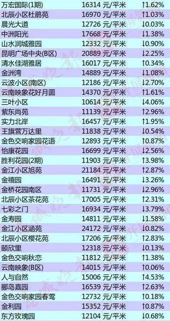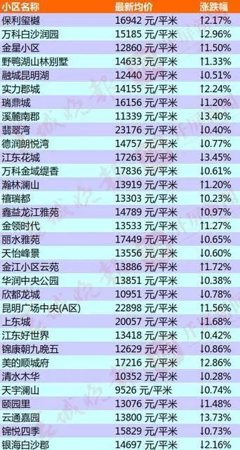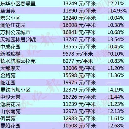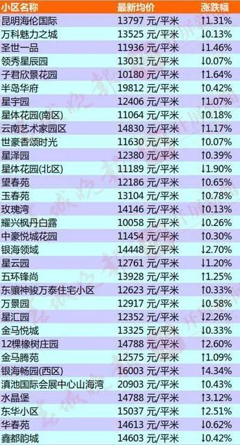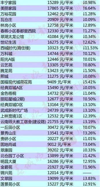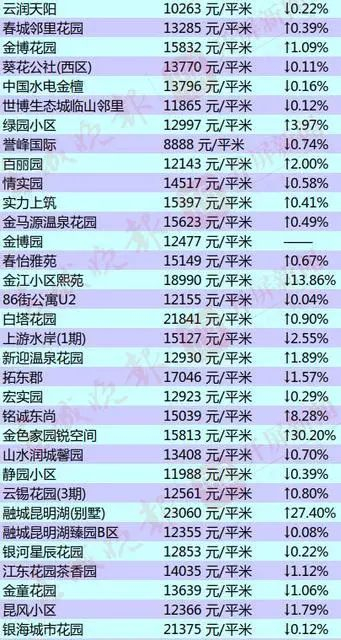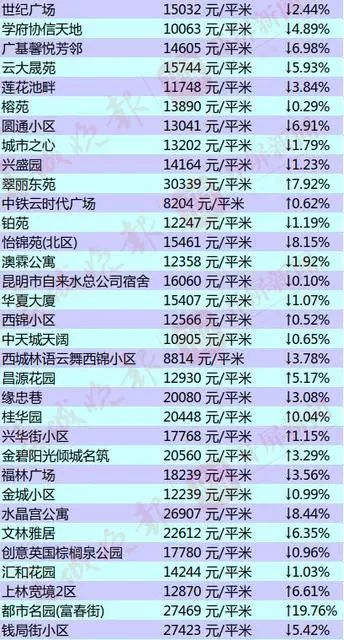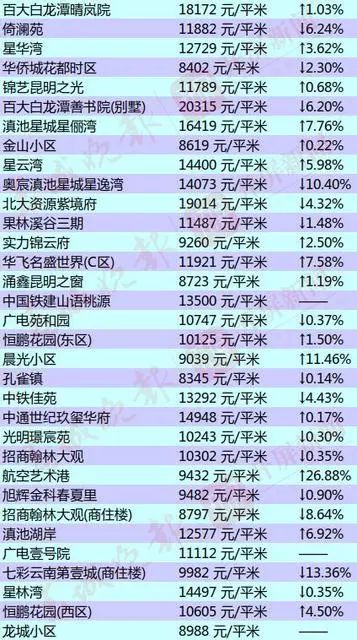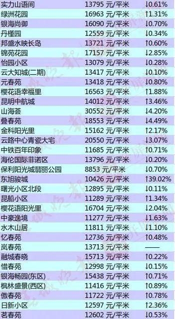 昆明部分小区的二手房房价出炉