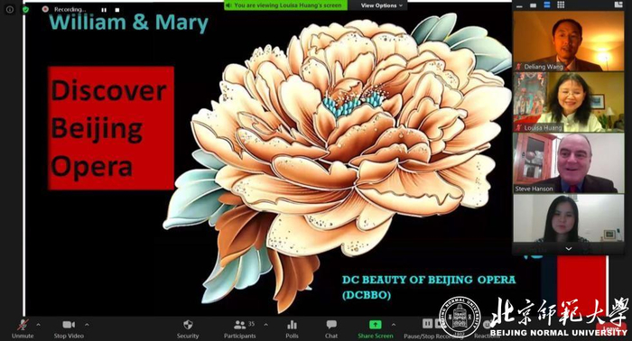 北京师范大学与美国威廉玛丽大学合作共建的孔子学院(简称“威玛孔院”)师生自新冠疫情蔓延以来,坚持工作,不断寻求变通,为促进中美两国的文化交流、增进中美两国人民的友谊不懈努力。疫情期间,威玛孔院采取灵活形式,举办“发现国粹之美,弘扬中国文化”线上系列讲座,选取具有独特魅力的两大国粹——京剧与中医,为国外师生举办了三场别开生面、妙趣横生且富有中国文化内涵的讲座。