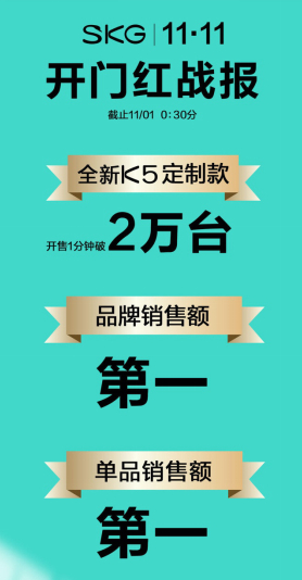 今年双十一开门红活动已落下帷幕,经过火热的比拼,各大品牌已陆续公布了开门红战果。苹果、耐克、华为、海尔、美的等品牌均突破亿元大关。除了传统品类,在2020年这样特殊环境下,人们对健康格外重视,各种健康类产品销售额突飞猛进。作为颈椎按摩仪行业的创新者和技术引领者,SKG颈椎按摩仪在今年双十一开门红中依旧势如破竹。