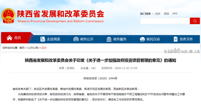 近日,陕西省发展和改革委员会印发《关于进一步加强政府投资项目管理的意见》,根据《意见》,我省将完善政府投资项目决策,规范政府投资行为,严禁实施“挖湖造景”“移石造景”“过度亮化”等政绩工程、形象工程。