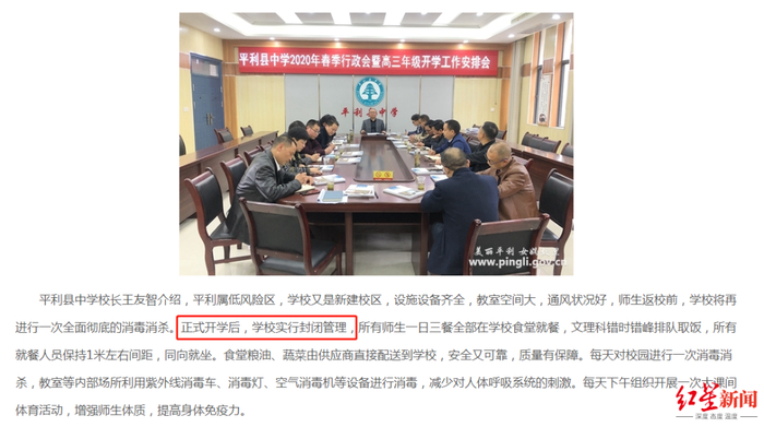 平利县政府网站3月26日的一则报道介绍了平利县中学2020年春季高三年级开学的工作安排