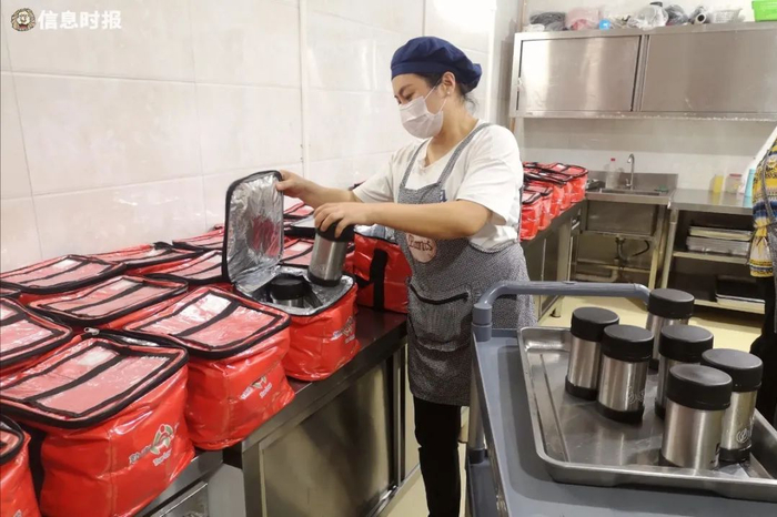 敦南真爱月子会所的厨房,工作人员在准备着汤水。
