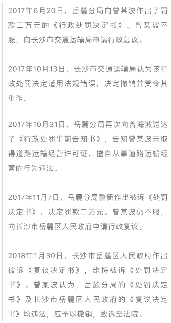 原标题:顺风车载客来长沙被罚2万!车主告上法庭,省高院判了……