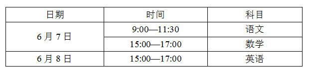 文化课实行全省统考,试题由省招办依据现行职业高中教学大纲命制。考试时间安排如下: