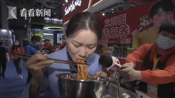 此次进博会上,韩国三养集团带来了一款明星产品——超辣火鸡面,这款火鸡面的辣度,据说是平时超市里售卖的普通版火鸡面的3倍。