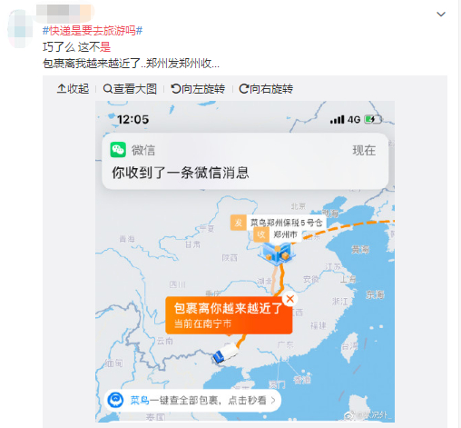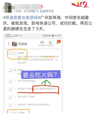 原标题:冲上热搜!“快递,你是要去旅游吗?”