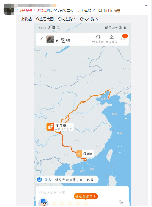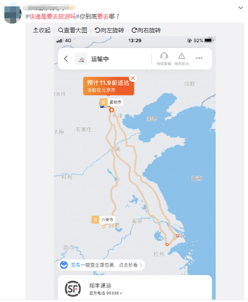 今天,#快递是要去旅游吗#