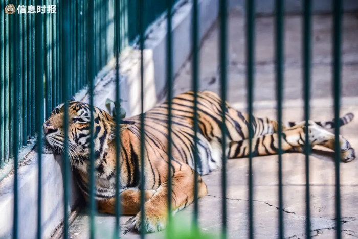 广州动物园的华南虎“洛洛”在笼子里歇息。本文摄影信息时报记者 徐敏