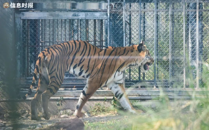 记者走访:园区内老虎体型瘦长,有告示提示“正确看待动物体型”