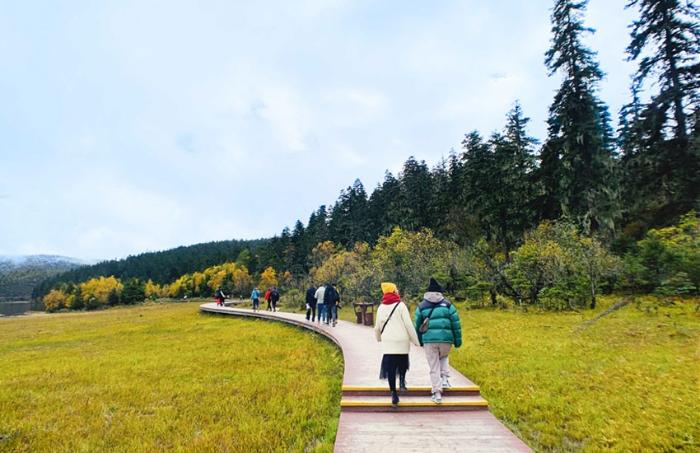 深秋时节,云南香格里拉普达措国家公园内层林尽染,草甸、牧场、森林、高山由绿及黄,由黄及红,呈现出极美的渐变色,层次分明的秋景成为众多摄影爱好者的天堂。