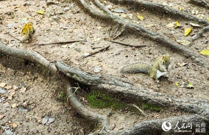 沿着湖边的木质栈道漫步,游客与原始森林零距离接触,感受虫鸣鸟叫的欢快与舒畅。林间不时跑出可爱的小松鼠,它们或捡拾着地上的松果,或向游客讨要吃的,呆萌的样子非常可爱。(曾智慧)
