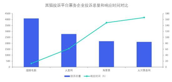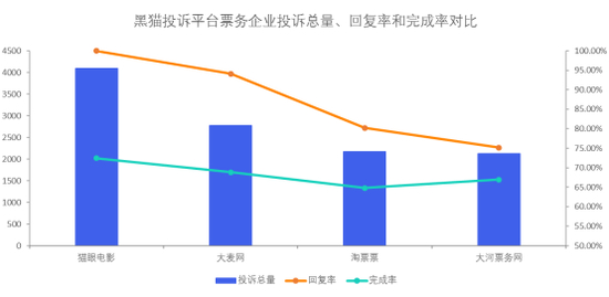 猫眼电影、大麦网、淘票票、大河票务网投诉数据对比:猫眼电影投诉完成率较高