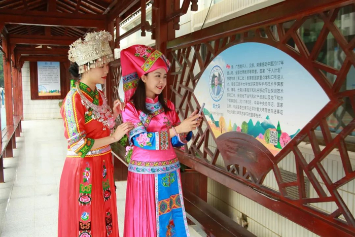 校园中有壮乡特色的塔式大门,“桂”系列立体式的民族文化景观,各班级独特的“八有”文化……校园中绿树成荫,四季花开,绽放着“美美与共,各美其美”的强大生命力。