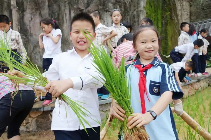 南宁市新兴民族学校“校园农场”插秧忙,体验劳动热爱劳动的孩子