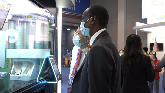 在本次展会上,记者发现,在2.1馆【C2-01】有一家号称世界“滴”一杯机器人咖啡的“COFE+机器人咖啡亭”,备受观众瞩目,据进博会工作人员介绍,全球只有四个国家七个企业能够研发机器人咖啡亭,而这家COFE+机器人咖啡亭就是其中的佼佼者。本次进博会是COFE+机器人咖啡亭“多口味个性化定制”4.0升级版的全球首发,使用埃塞俄比亚的精品咖啡豆、锡兰红茶、日本抹茶、比利时巧克力、土耳其榛果等进口原料。“前所味有,不同凡享”……现场消费者在采访中对记者惊喜地评价道。