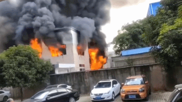 福建一厂房发生火灾 现场浓烟滚滚
