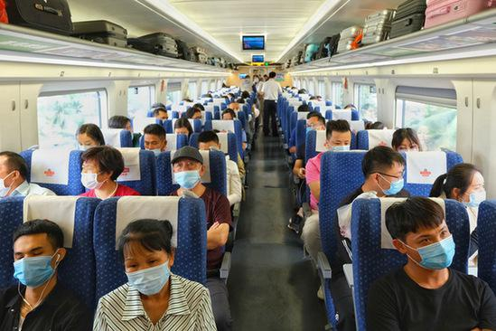 11月6日,乘坐环岛高铁C7404次列车的旅客在旅途中。(摄影:杨宝森)