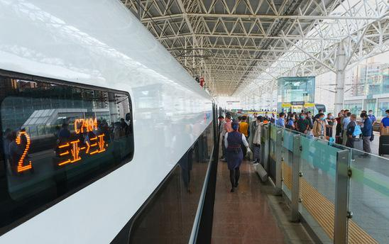 光明网讯(记者 李俊男)2010年底,海南环岛高铁东段建成通车;2015年底,随着海南环岛高铁西段的建成,海南环岛高铁正式建成通车。从海口东站坐到海口东站,或从三亚站坐回三亚站,让你感受到从未有过的乘车体验。西环高铁与东环高铁紧密相拥,成为全球首条热带地区高铁,也成为全球唯一一条环岛高铁。截至今年9月底,环岛高铁全线贯通发送旅客已突破1亿人次。海南环岛高铁如一张闪亮名片,牵引着海南自贸试验区进入经济腾飞的新时代。(摄影:杨宝森)