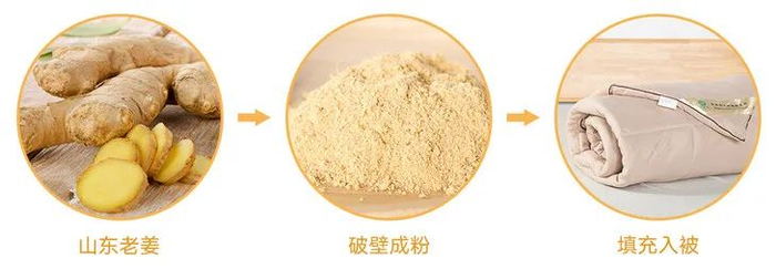 姜还是老的辣,老姜散寒效果好。平直堂便用「山东青州老姜」破壁成粉后,填充入被。