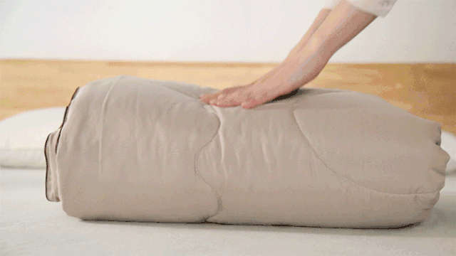 整张被子均匀填充,盖在身上,就像有热流窜到肩、背、腰、膝盖和足底一样,全身都暖呼呼的,好舒服。