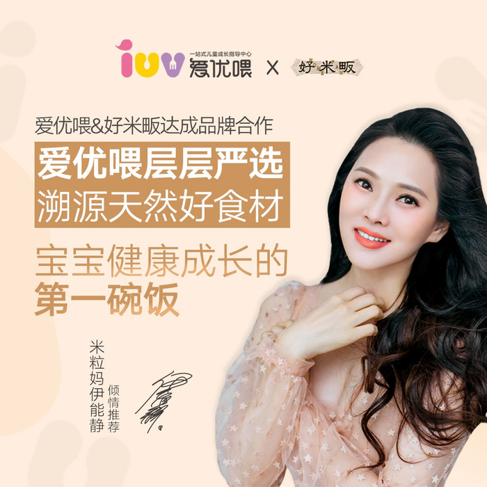 热烈祝贺爱优喂与好米畈达成品牌合作,双方将推出两款联名产品献礼双十一,爱优喂与好米畈联名款的问世备受关注,米粒妈伊能静倾情推荐 ,爱优喂与好米畈联名专为宝宝健康研发的良心之作。