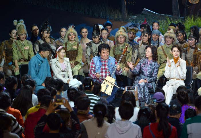 演出节目后,《大幕开启》特别设置了围炉访谈环节,总导演、编剧何燕敏,朝鲁扮演者赵磊、珊丹扮演者王金格、战马“尕腊”扮演者巴音达来等与观众交流。
