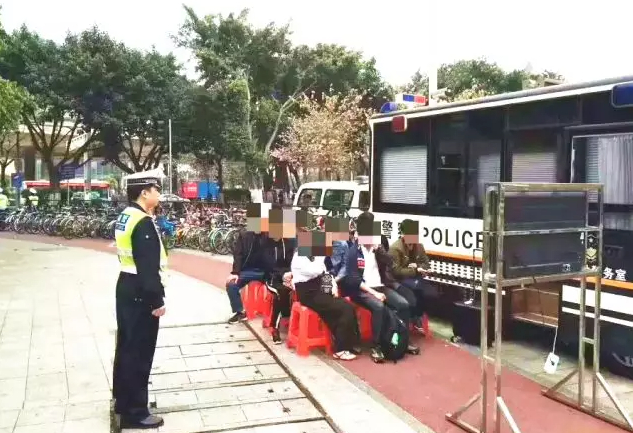 2018年,在广州番禺广场地铁站C出口,有市民因为过马路不遵守交通规则,被交警罚静坐观看交通安全宣传片。被处罚者如果赶时间,可以选择“拍摄自己被罚的视频发朋友圈”,并说明违反交规被处罚的情况,集齐20个赞就可放行。