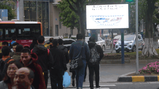 2019年,番禺广场地铁站C出口附近的人行横道上,警方安装了一套闯红灯抓拍系统,行人闯红灯会被拍“大头贴”在路边电子大屏幕上滚动播放曝光。