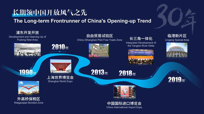 上海始终坚持制度创新、先行先试,从浦东开发开放到长三角一体化发展国家战略,从全国第一家保税区到第一家自贸试验区、再到自贸试验区临港新片区,从世博会到进博会,一直走在全国改革开放最前沿。