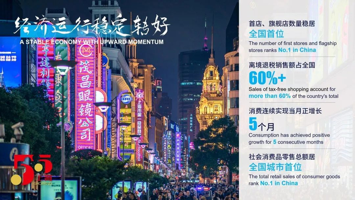 首发经济、夜间经济、品牌经济、免退税经济、平台经济活力齐释放,首店、旗舰店数量稳居全国首位,离境退税销售额占全国六成以上,180多家“中华老字号”企业生机勃发。首届“五五购物节”“六六夜生活节”有力汇聚了人气商气,中秋、国庆长假购买力爆棚。消费连续5个月实现当月正增长,社会消费品零售总额居全国城市首位,消费对经济增长的贡献度超过60%。