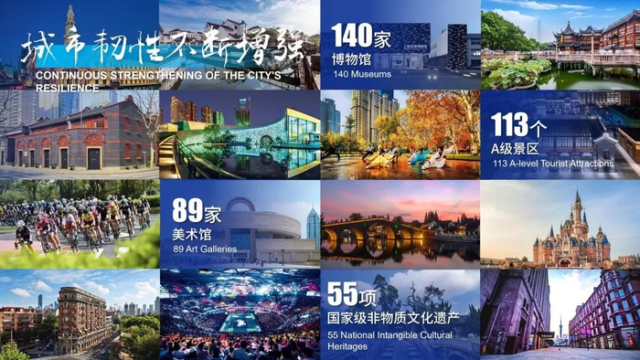 全力打响“上海文化”品牌,红色文化、海派文化、江南文化水乳交融、相得益彰,每年近4万场演出、1000多个展览活动引人驻足观赏、流连忘返,140家博物馆、89家美术馆、113家A级景区、55项国家级非物质文化遗产遍及全市、独放异彩,早餐工程、幼儿托育等民心工程暖心暖胃、深受欢迎,国际文化大都市建设取得重要进展。