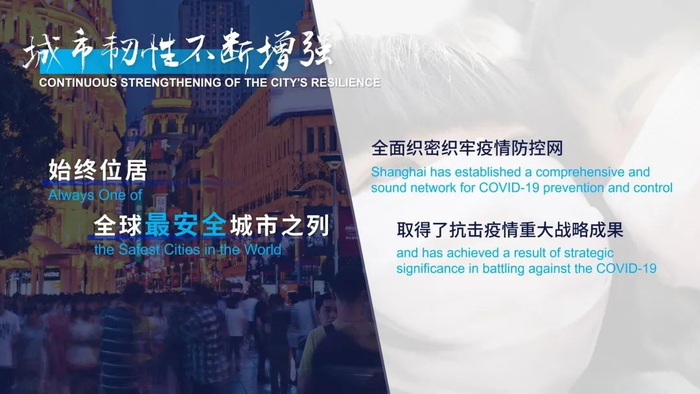 上海坚持人民至上、生命至上,以系统性防控守牢城市安全底线,始终位居全球最安全城市之列。特别是新冠疫情发生以来,迅速打响抗疫阻击战,全面织密织牢疫情防控网,外防输入、内防反弹,取得了抗击疫情重大战略成果。
