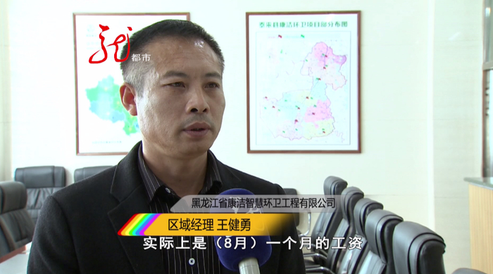 通过泰来县住房和城乡建设局,记者联系上黑龙江省康洁智慧环卫工程有限公司的区域经理王健勇。王健勇解释说,按照与环卫工人之间的合同约定,公司给环卫工人的工资需要延期一个月支付,为保障环卫工具的完好使用,发放工资的日期是每个月中旬前后,也就是说10月份发8月的,11月份发9月份的,以此类推。