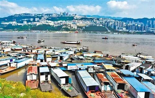 为有效恢复长江流域重点水域水生生物资源,促进水域生态环境修复,自今年8月1日零时起,重庆市巫山县天然水域实施十年禁渔。退捕上岸的650名渔民将实行转产就业。图为巫山县农业综合行政执法支队在长江南岸的南陵码头对渔船进行拆解。 王忠虎摄(中经视觉)