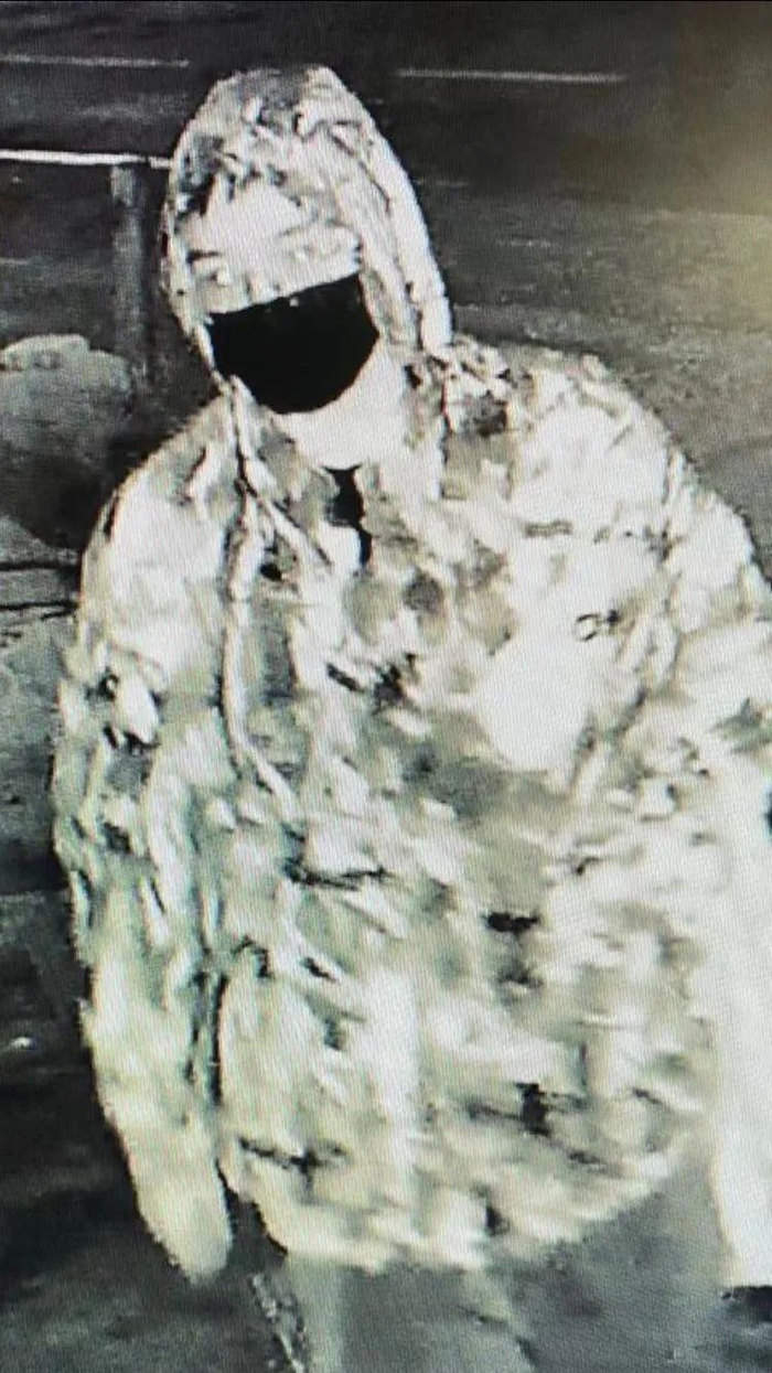 通过店主们的视频画面比较,确定行窃的男子为同一人。这名男子大概20多岁,戴眼镜,面部戴着口罩,身穿迷彩服羽绒服,衣服的背面有一个较大的、夜光的地图图案,男子的手上还挎着一个帆布包。