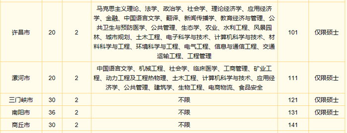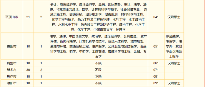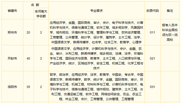 河南省选调生名额分配及志愿代码表