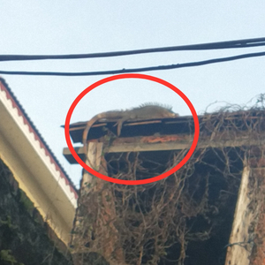 严女士说,早上听到家房顶有异响,于是前去察看,就发现这只大蜥蜴。由于这只蜥蜴长相怪异,村民们都不敢接近,于是报警求助。