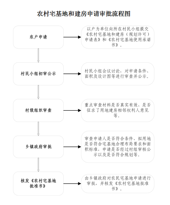 (二)规范农村新增宅基地审批和建房规划许可管理。符合宅基地申请条件的农户,以户为单位向所在村民小组提交书面申请,村民小组初审并公示后将相关材料交村级组织审查,村级组织审查通过后报送乡镇政府,由乡镇政府审核批准。