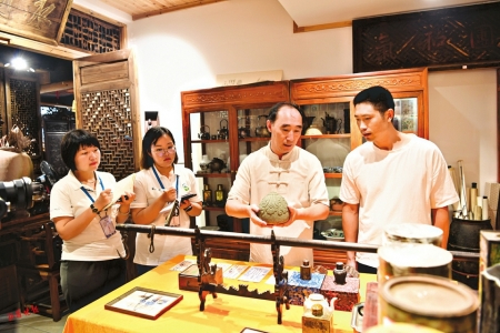 54岁的张晋湘是玉通永第19代传人。清光绪二十五年(1899年),其祖父张紫宸来到安化,一直生活到1946年才离开。从张晋湘的名字可看出张氏家族与山西的情缘。2016年,他注册了“玉通永”品牌,开了自己的茶行。随着年纪的增长,“认祖归宗”的念头在他脑海里日趋强烈。然而,他与父亲分别到山西多次,寻亲却始终未有结果。“其实,只是想知道老家在哪里,爷爷去世后葬在哪里,给他的坟头上炷香,磕几个响头,告诉他我们现在过得很好,不用挂念。”张晋湘有个想法:“作为晋商后人,我一定要把老祖宗的宝贝传出去,把我们的老字号传承下来。”