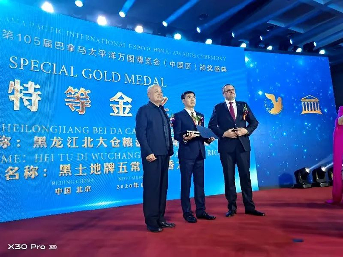 黑龙江北大仓粮油股份有限公司总经理杨绪斌领取特等金奖的奖章证书后欣喜地表示,巴拿马博览会评审委员会授予北大仓黑土地大米特等金奖,这荣誉不仅仅属于北大仓黑土地牌大米,也属于五常大米、黑龙江大米乃至中国大米,这是巴拿马博览会105年来首次有大米产品获得最高奖项,助力中国优质农产品走向世界。