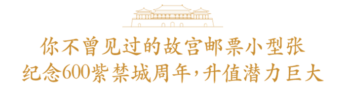 不仅有历史难得的故宫邮票小型张。还罕见地把故宫宫标和600周年字样印在邮票上。发行量为近几年新低。