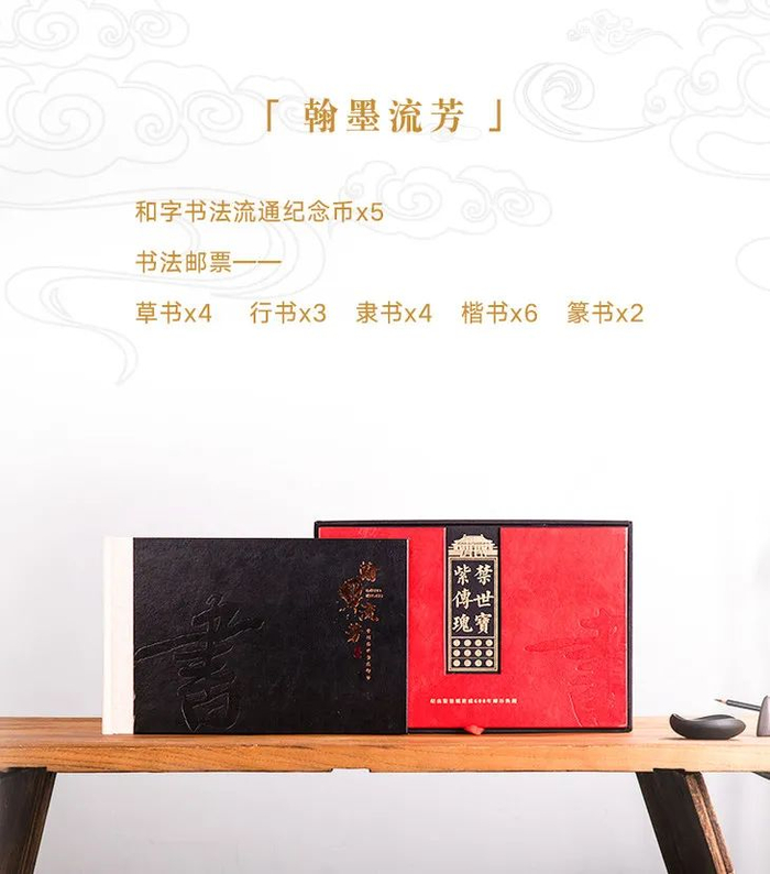 这套珍藏册不仅一次性为你收齐了5款和字纪念币,还有国宝文物类珍邮「古代书法系列」邮票全套。