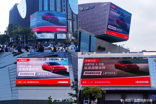 为了将如此力度强悍的活动让更多人知晓,聚划算百亿补贴与小鹏汽车在全国各地联合打出了浩大的声势:在包括北京 上海等15个城市的商圈大屏,滚动播放聚划算百亿补贴X小鹏汽车的合作信息,引来大量新闻媒体报道,而后双方官微通过线上互撩,在社交媒体释放此次万台补贴活动信息,引发行业内的热烈讨论。