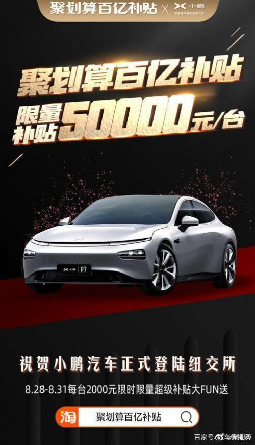 8月底,小鹏汽车在美上市,聚划算百亿补贴庆祝小鹏登陆纽交所,上线了小鹏汽车限时补贴活动,短短5天内订单就突破了6000 单,相当于每小时卖出 50 单!