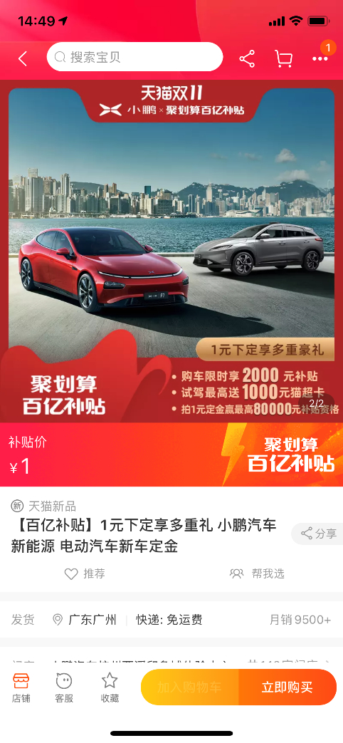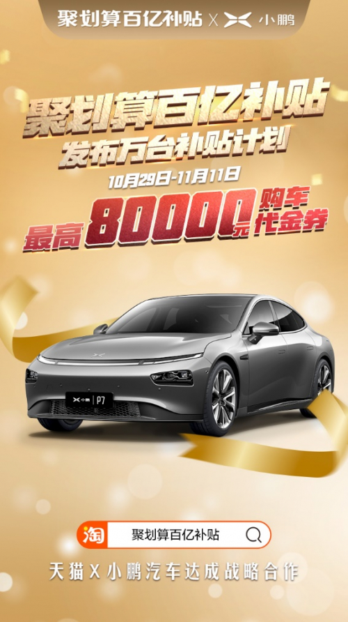 原标题:小鹏汽车携手聚划算百亿补贴酣战双十一,万台售空战果喜人