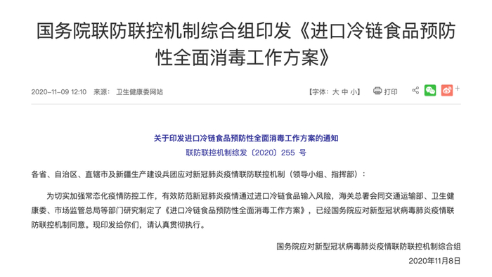 为有效防范新冠肺炎疫情通过进口冷链食品输入风险,方案要求,在做好进口冷链食品新冠病毒检测工作的基础上,充分发挥消毒对新冠病毒的杀灭作用,在确保进口冷链食品安全的同时,提升口岸通关效率,避免货物积压滞港,保障产业链供应链稳定。