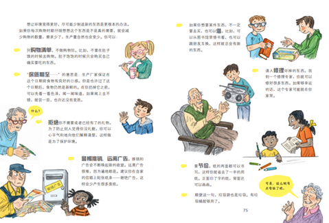 如果你想做点什么来减少垃圾,你可以怎么办?书中也给出了很多参考,比如:先列购物清单再去买买买,保质期到了的食物如果没变质也可以考虑吃完,拒绝不必要的礼物和消费,警惕各种推销,远离广告,没有必要买的东西也可以选择借用,坏了的物品可以找人修,买更耐用的产品,把旧物改造成五花八门的东西增加使用寿命……